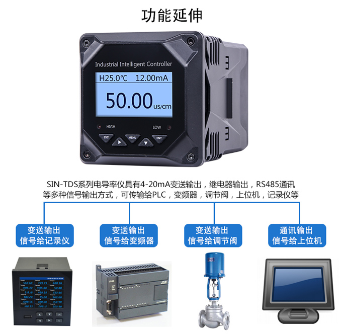 SIN-TDS210工業電導率儀表,可對各種工業用水的電導率(TDS)值進行連續測量和控制。